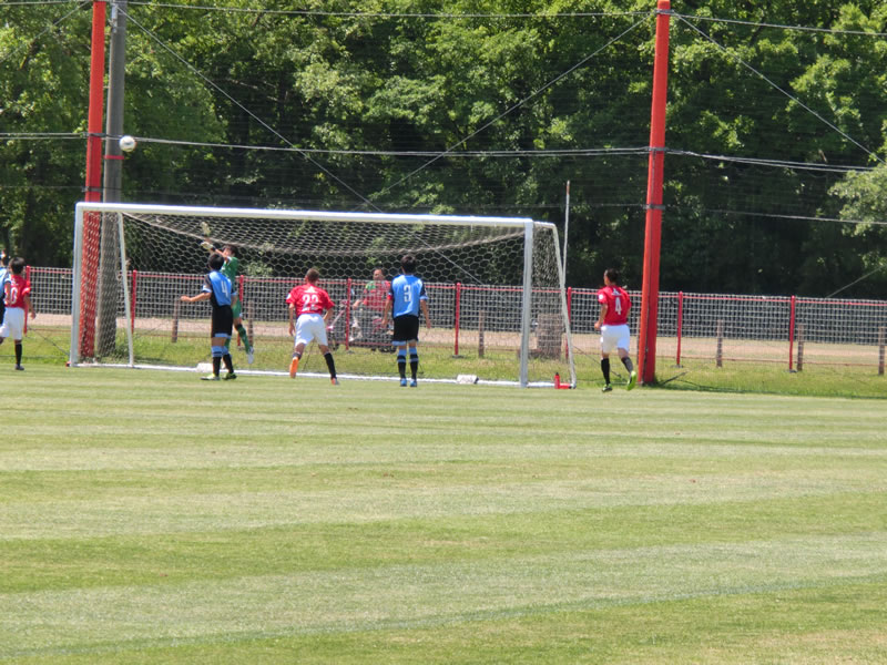 このゴール、プレーしている選手から見たら、またゴール真裏で見ていた方であれば、ゴールしたとはっきりとわかったと思うのですが、ちょうど横から見ると、ゴールの下か穴が開いていたのかはわかりませんが、シュートがそのままゴールを抜けて行ったので、最初、わずかに外れてサイドネットに当たったのかと思っていて、「外れた!」と思っていた横から見ていた私たちと、はっきりとゴールとわかって喜んでいた選手たち。