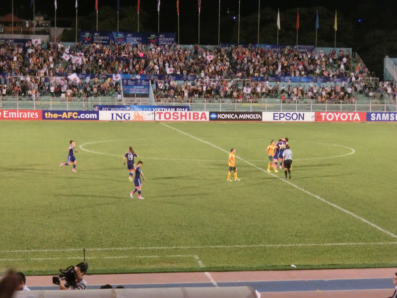 ちょうど、20日からホーチミンシティに来ており、滞在期間中に、21日の5位決定戦のベトナムvsタイの試合、22日の準決勝、なでしこジャパンvs中国、そして25日に決勝の、なでしこジャパンvsオーストラリアと計3試合を観戦しました。