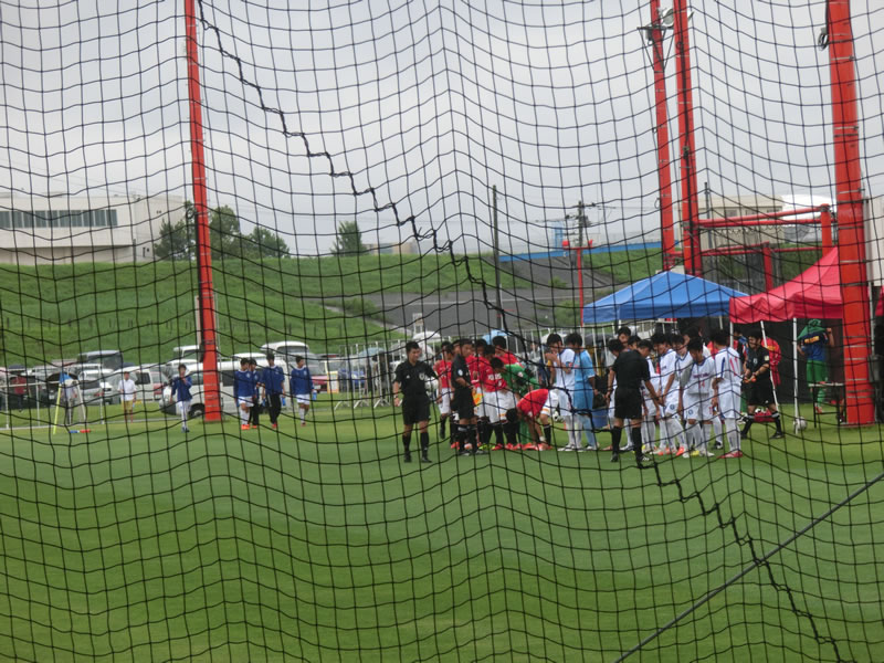 ということで、13分に1-0で先制すると、27分にも相手のボールコントロールがうまくいかずに、こぼれたところをすかさず、やや距離があるところでしたが、10番シマブク・カズヨシがミドルシュートで決めて2-0とし、更に、前半終了間際のフリーキックのチャンスで9番樋口颯太からのボールを3番大西翔也がヘッドで押し込んで3-0と大きく差を広げて、前半を折り返すことに成功します。