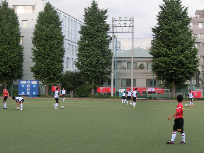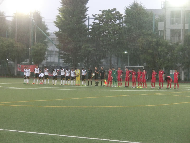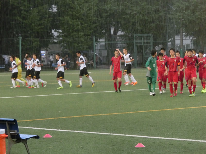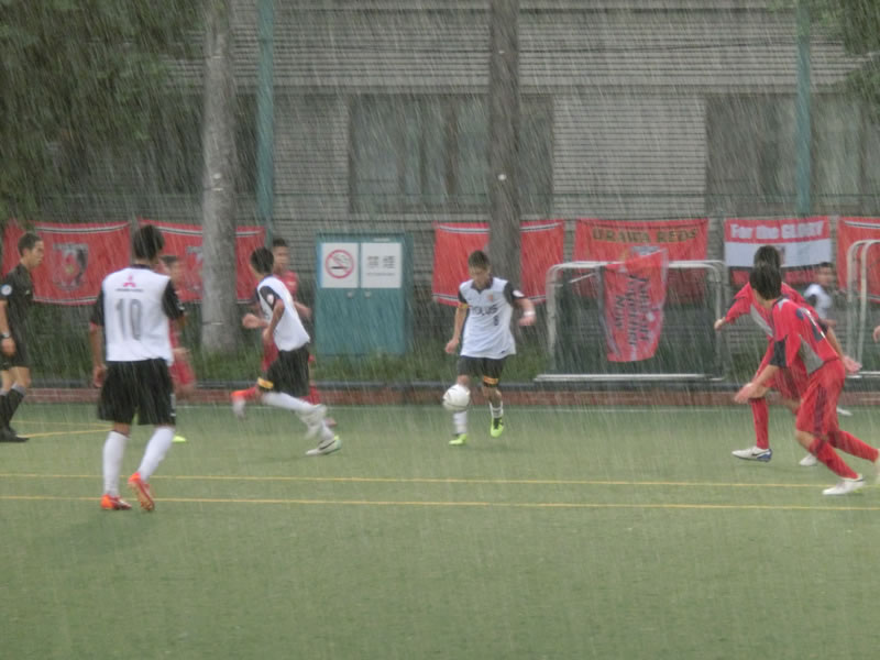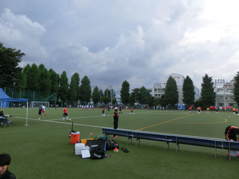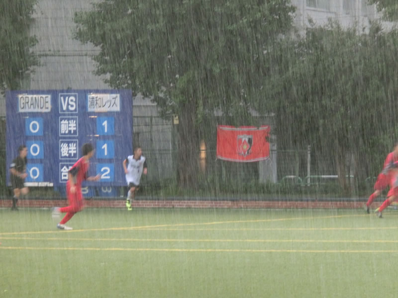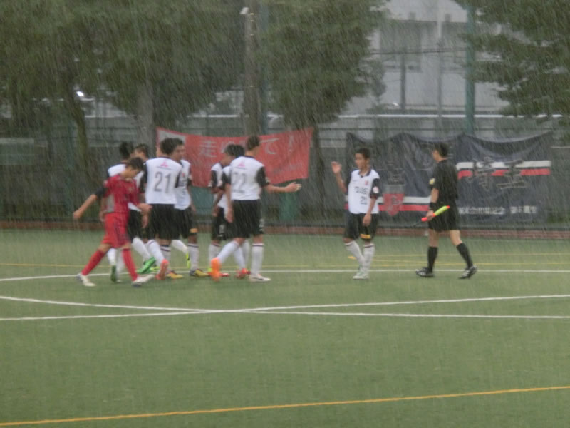 かなり雨も降ったのですが、少しいやな印象があった三菱養和の人工芝のグラウンドでしたが、水はけは、かなり良かったようで再開前は水たまりになっている個所も多く見受けられたのですが、試合が再開して少しで、試合に大きく影響するような水たまりはなくなっていました。