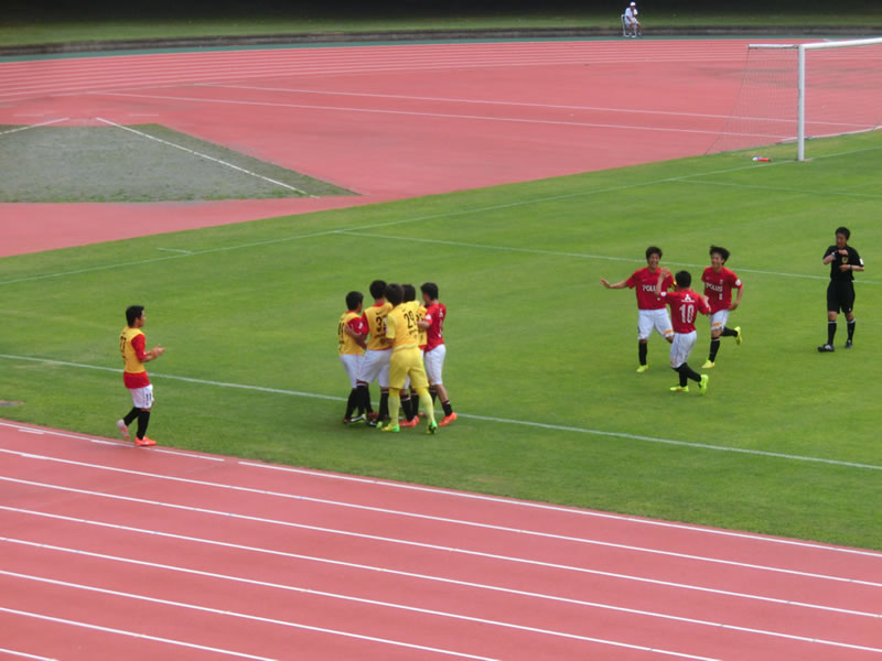 後半27分に、パスを受けた8番斎藤翔太がドリブルで相手選手をかわして左から深い位置まで持ち込みマイナスのクロスで9番小島良太にパス。ここで思い切ってシュートを選択し、ディフェンダーと浦和の選手が密集する中で枠をとらえたグラウンダーのシュートを19番松澤彰が少し触ってゴールという形のようです。