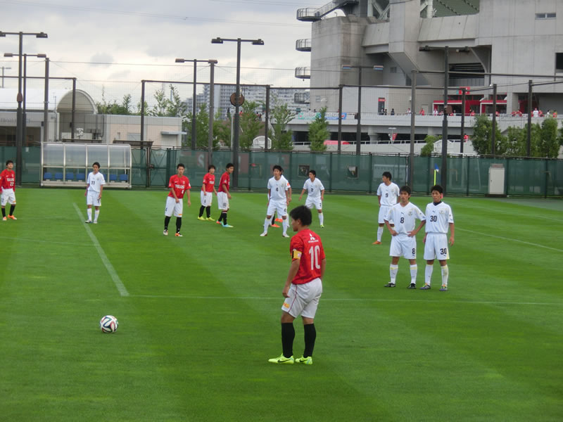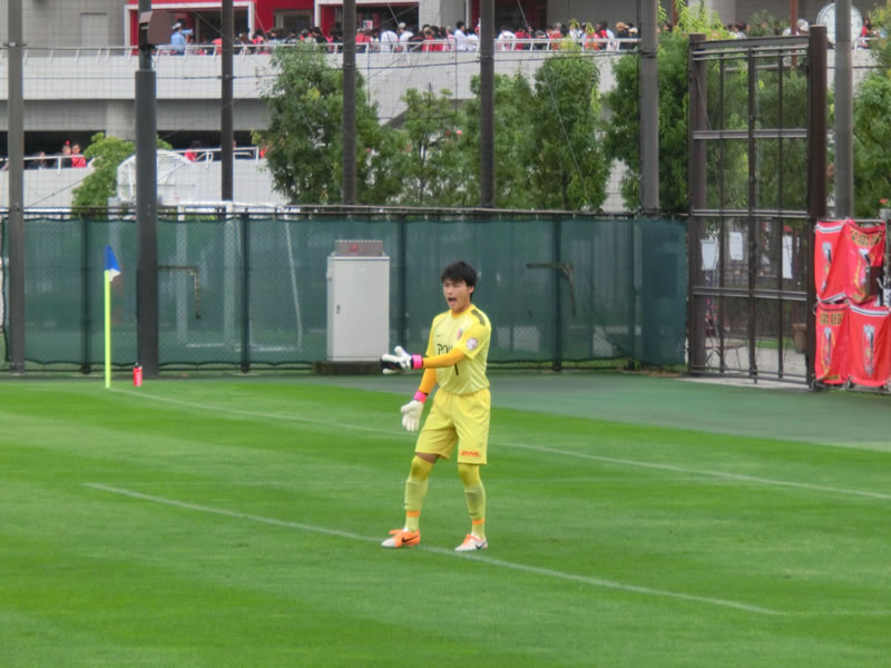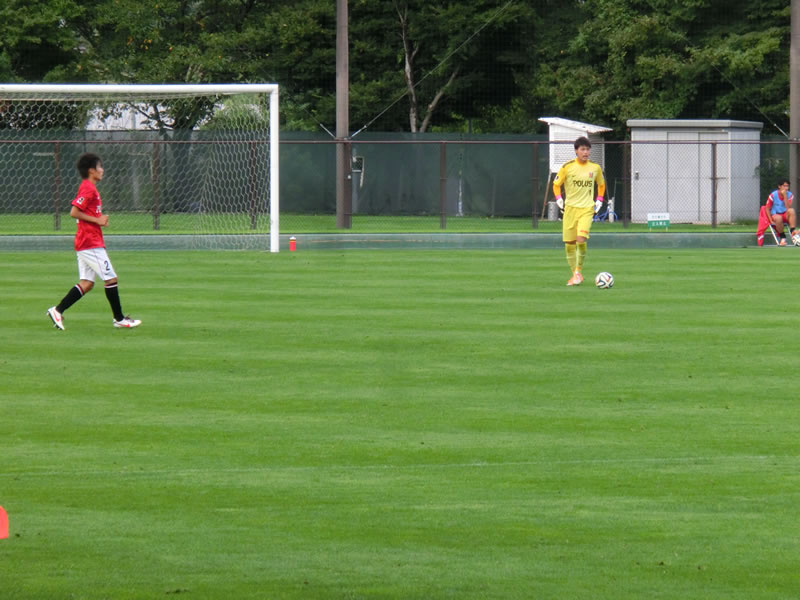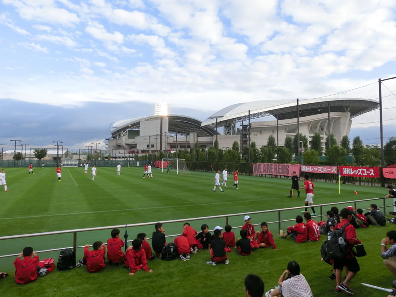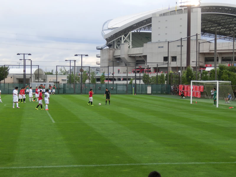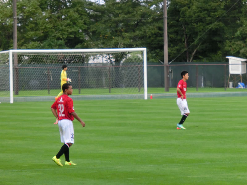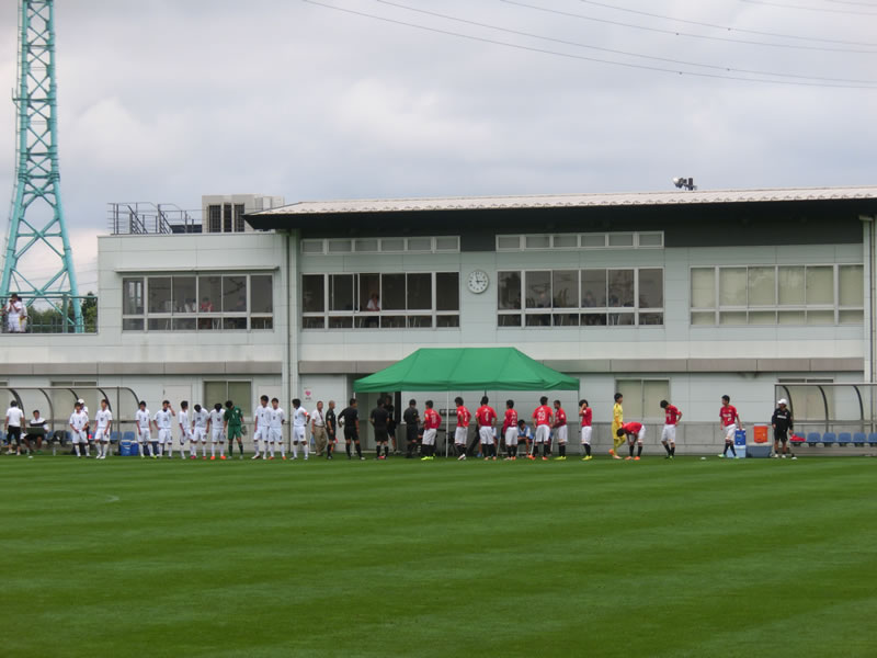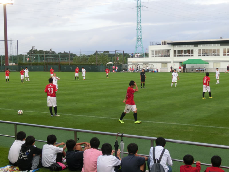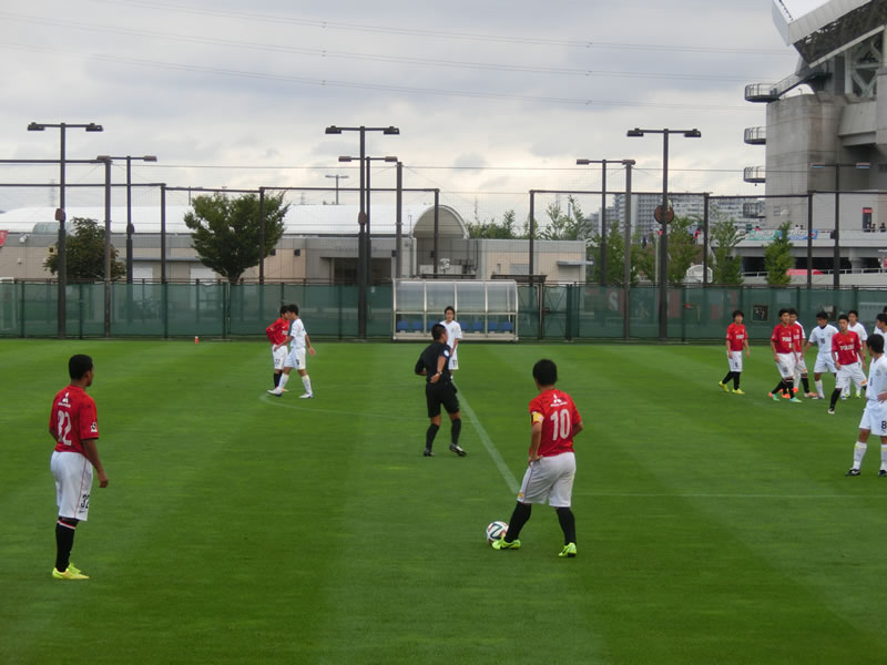 昼頃まで降っていた雨も、試合前には止み、気温も前日の蒸し暑さが嘘のような涼しいくらいの気候になり、プレーする選手にとっては、なかなか良い環境になったのではないでしょうか。トップチームとの兼ね合いで掛け持ち可能にするためか、それなら最初からそうすればよいのにと思ったりはしましたが、当初レッズランド開催の予定の試合が、埼玉スタジアム2002サブグラウンド開催になった、前橋育英高校との試合になります。