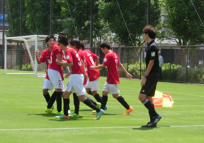後半2分に8番影森宇京からのパスを受けた12番松尾佑介が裏に抜ける21番時里元樹に通して、落ち着いて決めて1-2。