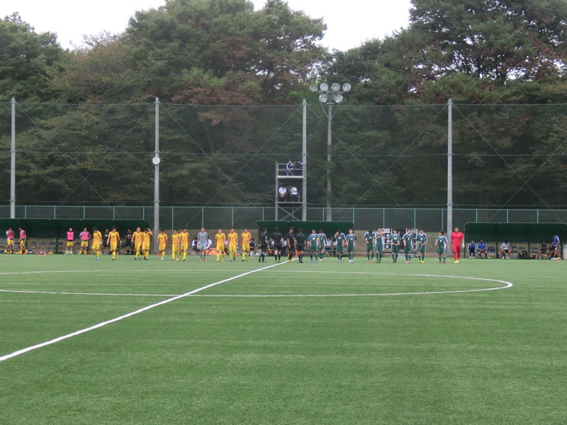 ゴール前での怖さには、やや欠けるために、なかなか得点が入らないと試合の流れが変わるような雰囲気もありつつ、ちょうど、試合開始からの小雨がやや雨が強めになったりでスリッピーな状況下で、東京農大の思いきったミドルシュートを相手キーパーが処理しきれずに決まり先制すると、更に、コーナーキックからおそらく直接入ったと思われるゴールで追加点で2点をリードすることで、相手ペースにさせずに試合終盤まで来たところで、立正大学が1点返すと、そこから迫力ある攻撃をこらえるという時間になりつつも、リードを守り切って2-1で東農大が勝利という結果になりました。