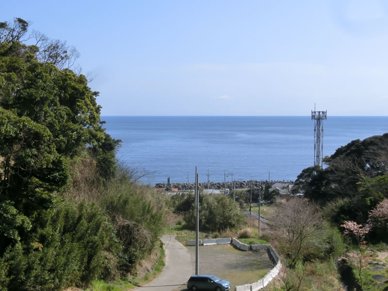 蛇塚グラウンドからの海の景色。試合がネット越しで写真がむごいことになっているので、最初くらいは、きれいめの写真をということで載せてみました。