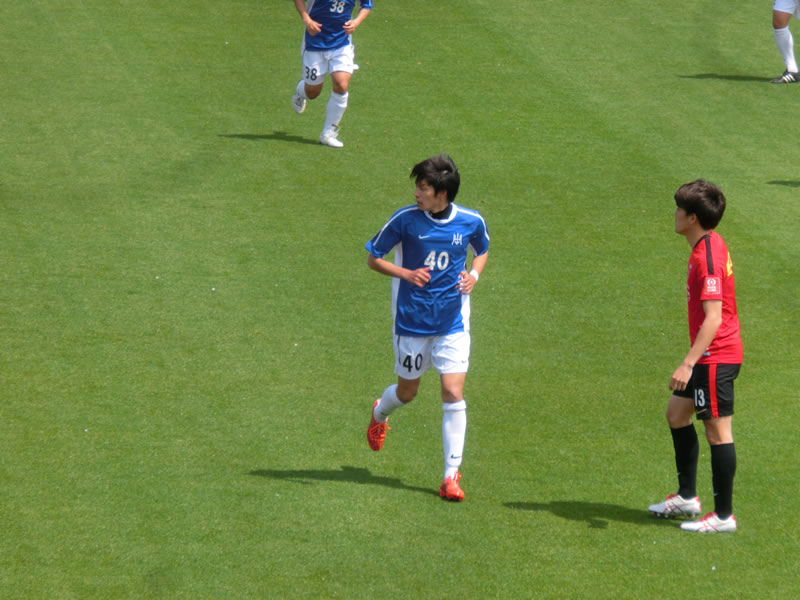 浦和レッズは、前日ACLがあったので、控えメンバー中心ですね。平成国際大学は、ここ最近の試合では、浦和レッズジュニアユース出身の都築洋平、武藤稜がスタメン出場しており、ゴールキーパーの内島大樹も出場していることも多いような状況と聞いていましたが、今回の試合では、3人とも姿は見られたものの、出場していたのは、都築洋平のみでした。