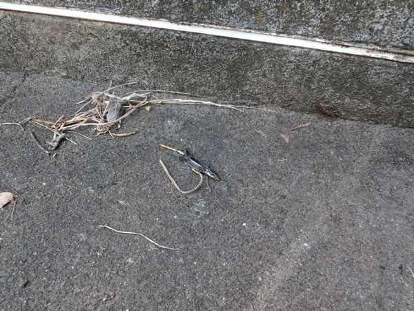 ヤモリとかトカゲとか嫌いな方、すみません。証拠として写真に撮ったので載せますが、ヤモリかトカゲかの死骸が置いてあったんですね。