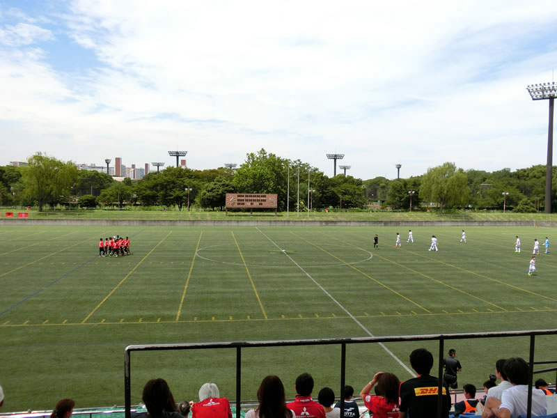 ということで、雑談から入りましたが、ジュニアユースの夏の全国大会出場を決める大会となる、関東クラブユース選手権(U-15)の3回戦ですね。前日栃木の蒸し暑い中での試合から連戦で、今日は、また近そうで近くもない東京の大井第二競技場での試合となりました。かなりプレーする選手にも過酷な2連戦ですね。