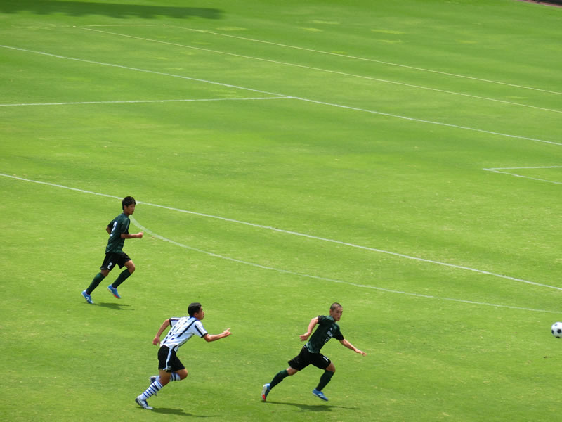 まず第1試合は、広島広域公園第一球技場で昌平高校vs静岡学園の試合を観戦。どうでも良いのですが、JFAの大会のページで静岡学園高校だけサッカー部まで書いてあるのはどうしてなのでしょう?特に意味はないのかな?
