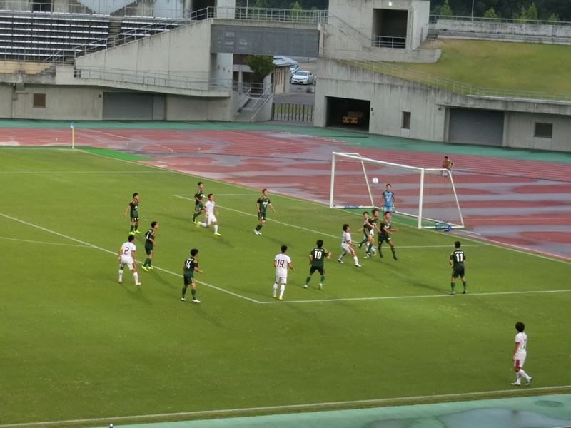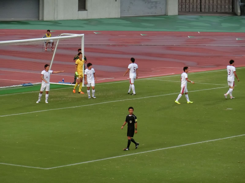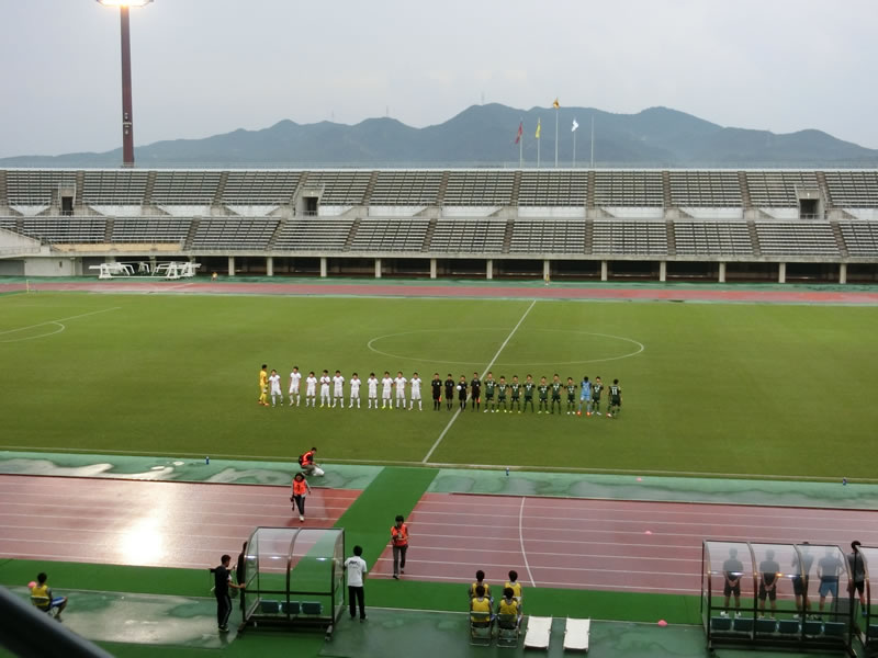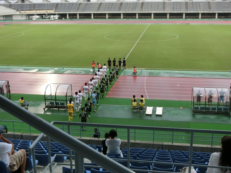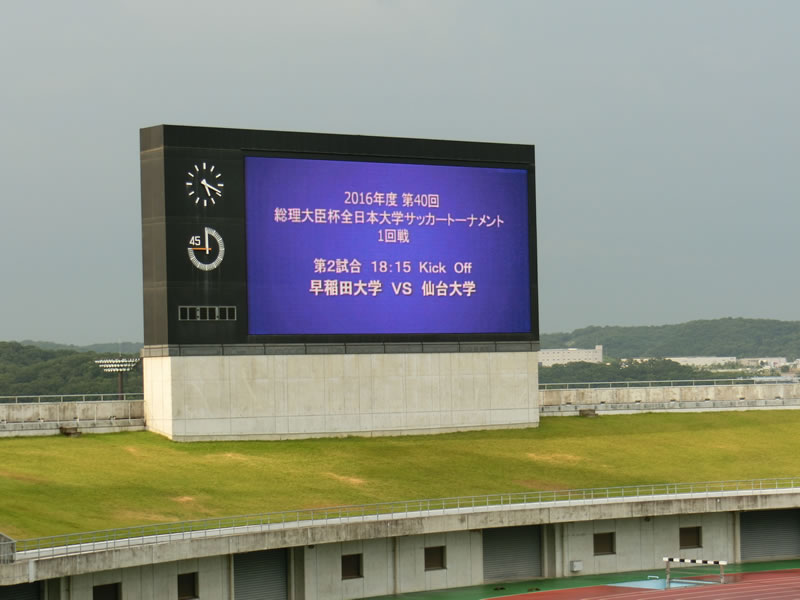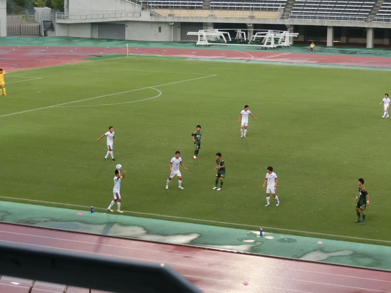 昨年に引き続き、大学サッカー総理大臣杯の1回戦に足を運んでいます。それにしても、この日の総理大臣杯を観戦に遠方から足を運んだすべての方にとって、かなり大変な1日になりましたね。その意味では、申し訳ありませんが、仙台大学vs早稲田大学を観戦しようとした私たちにとっては、まあ、運よく15分遅れで試合が観戦できたので助かりました。ということで、この日は、晴れでものすごく暑くなった一方で、ちょうど試合の時間くらいに急激な雷雲の発生で、京都、大阪、神戸と会場自体は分散されていたものの、いずれの会場も、この影響を受けて、試合中断やら延期やら、数試合に至っては、結果的に今日7日に場所を移して開催されることになった試合もありました。