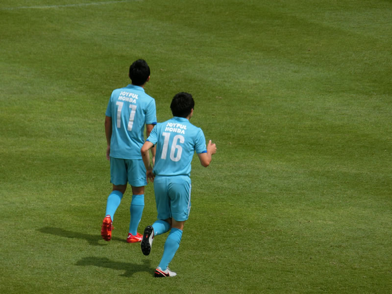 私個人的には、戸嶋祥郎のプレーをメインに当然見ていたわけですが、相変わらず、良いポジショニングや、相手が隙を見せたときにボールを奪いに行くタイミングが絶妙でした。それだけに、私個人的にも、イエローカードを受けた場面が未だに納得できなかったりします。明らかに、相手が見せた隙(ボールコントロールを長くしてしまった)を、すかさず狙って奪うというところで相手が慌てて足を出して接触したという形なので、これが、どうしてイエローカードにまでなるプレーなのかは、納得できなかったりします。
