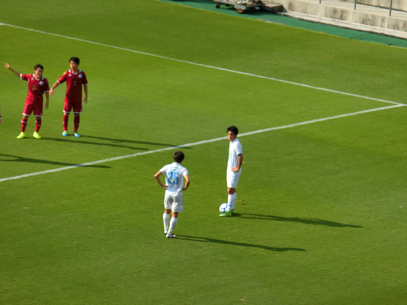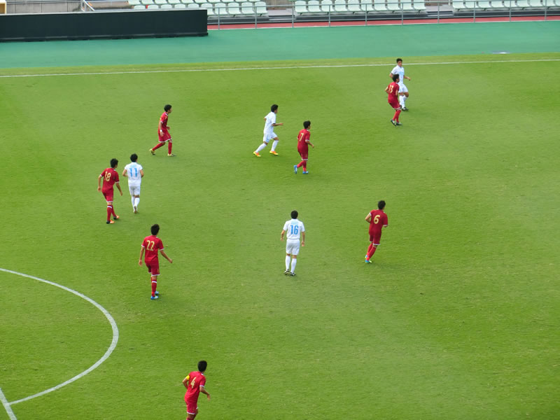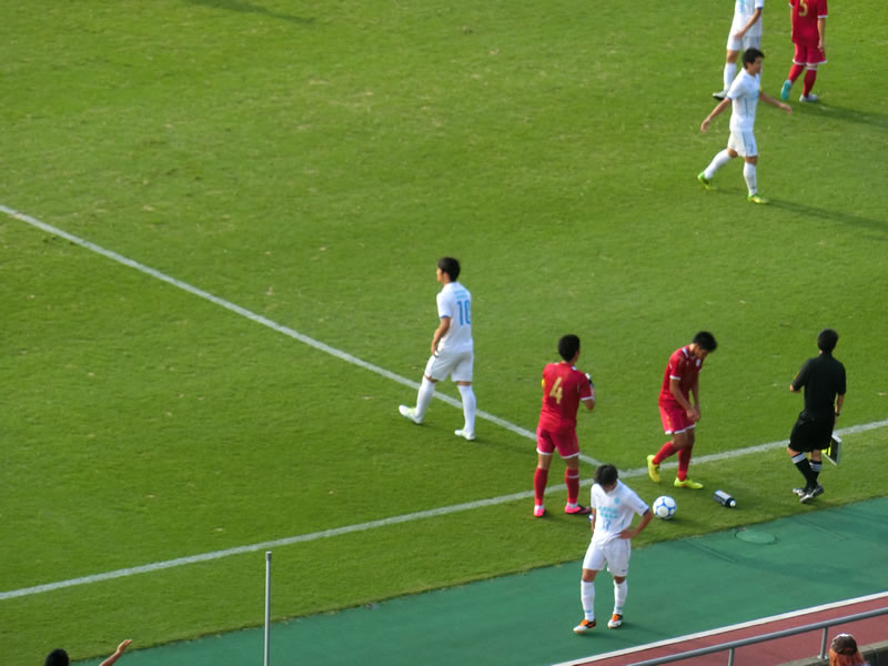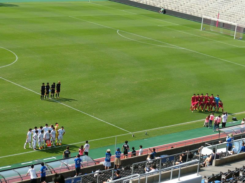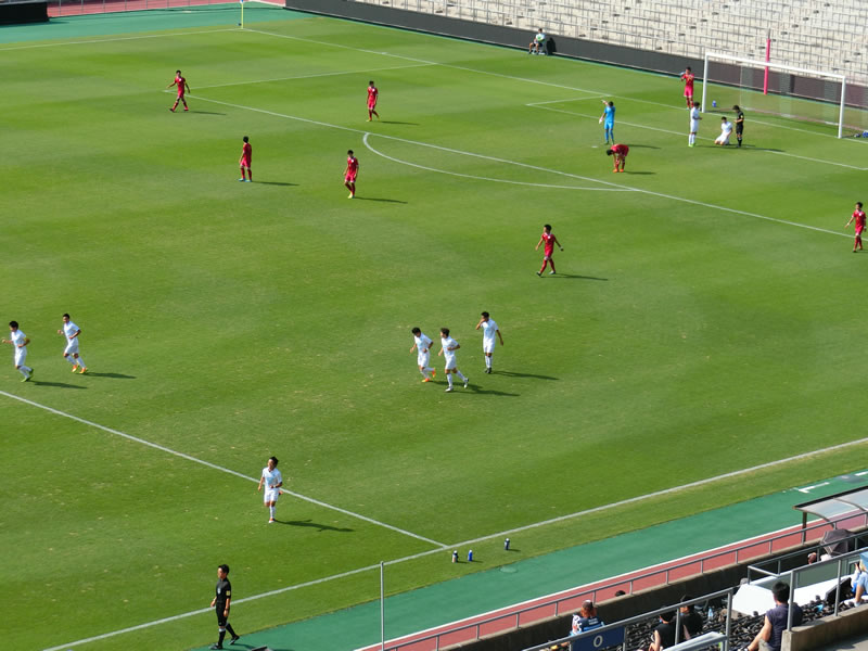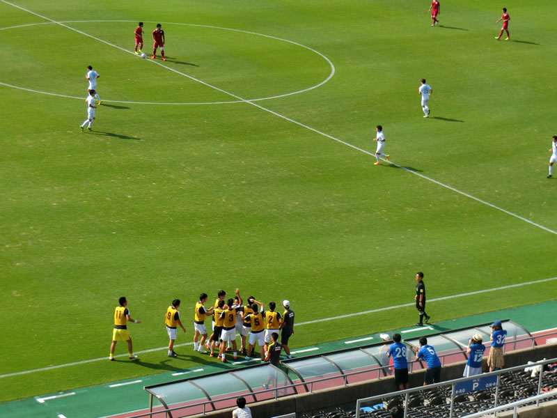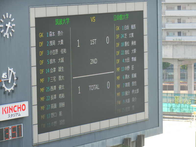 対戦相手の立命館大学には、特に知っている選手がいるということでもないので、この試合は、筑波大学をしっかり応援させてもらいました。試合は、あっという間に筑波大学が先制するという望ましい展開になったものの、暑さもあったのか、今年何度か見ている筑波大学の戦いの中でも、かなりリズムが悪いように見え、失点の場面含め、何か、あっさりと崩されたり豪快な得点を決められてしまったり、失点しなかった場面でも、ディフェンダー一人に対して、相手選手がフリーで5,6人いるような決定機を作られたりした場面など、ある程度、メンバーを入れ替えたりしてきて連携のところが上手くいっていないのか、よくわかりませんが、思い切りの良い立命館大学の攻めで何度もピンチを迎えるところは気になりました。