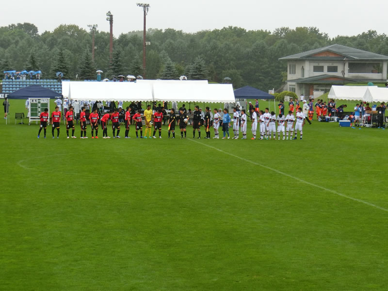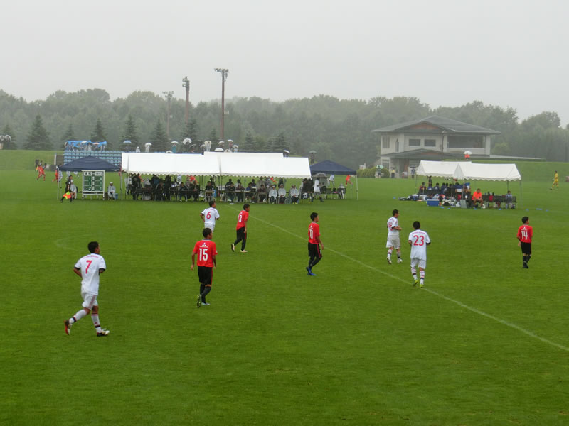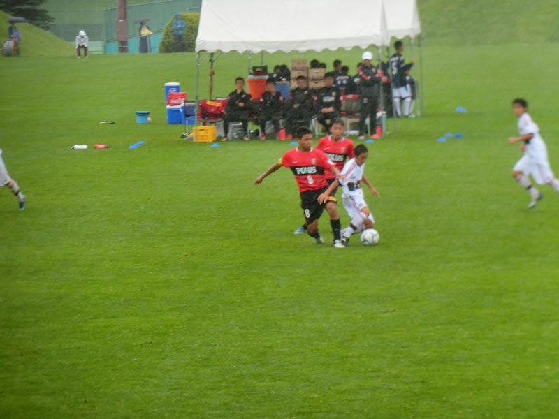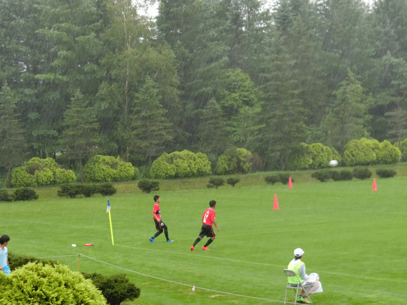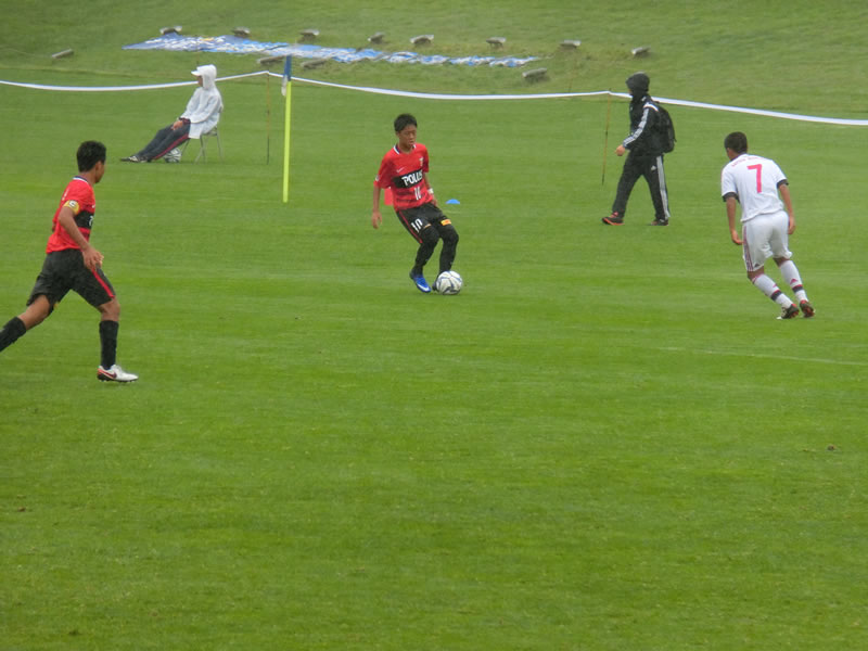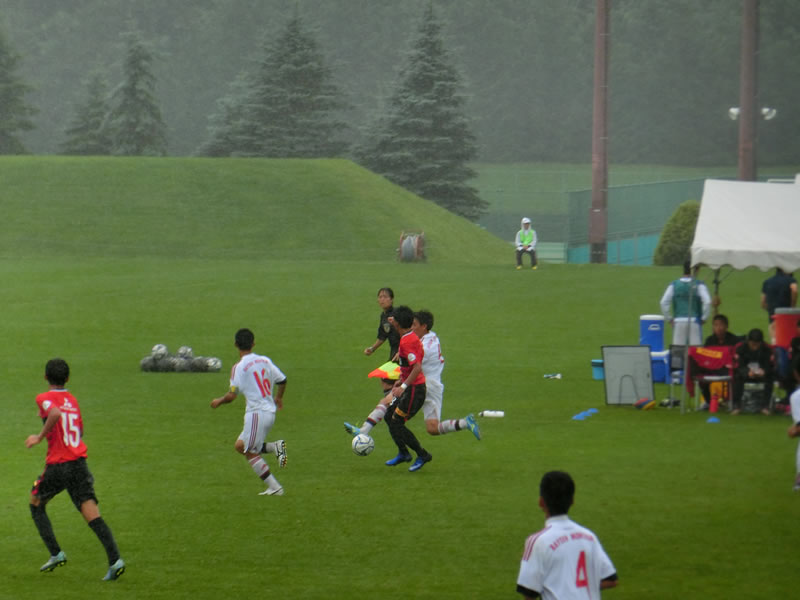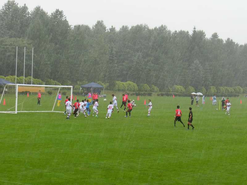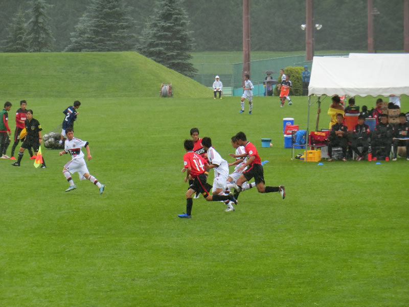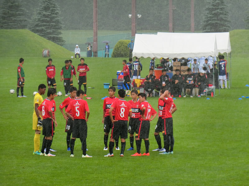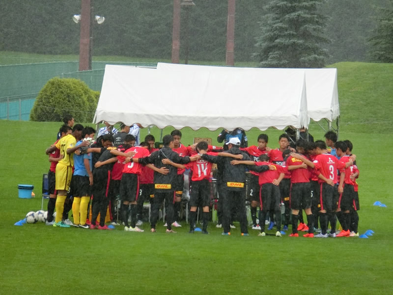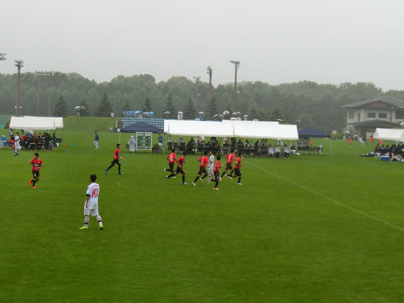 浦和レッズジュニアユースが臨む日本クラブユース選手権U-15、グループステージも最終戦となりました。16日に関東を襲った台風7号が、影響を及ぼすかもしれないという予報が出ていた北海道の帯広でしたが、雨は時折すごくなる時間もあったものの、強風など、よりサッカーの内容を左右するような状況までは行かず、雨というやりにくい環境はあったものの、ピッチコンディションの良い、帯広の森球技場で2連敗して後がなかった浦和が、最後の最後に意地を見せ、ただ勝利しただけではなく、その姿勢がグループステージ突破をもたらすという最高の結果をもぎとってくれました。