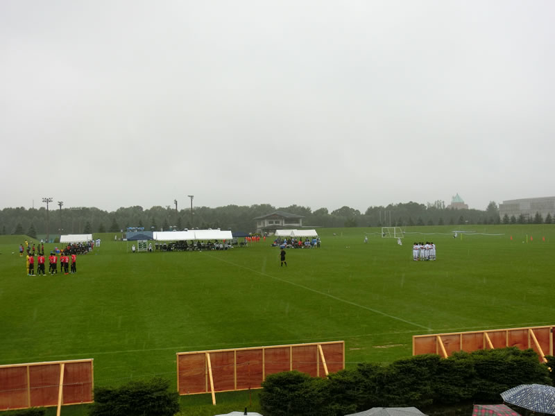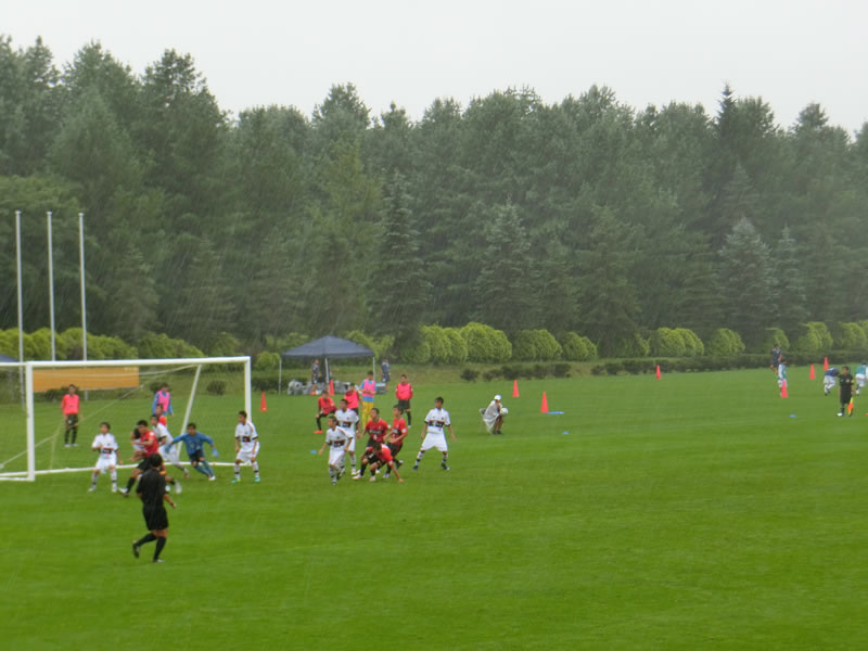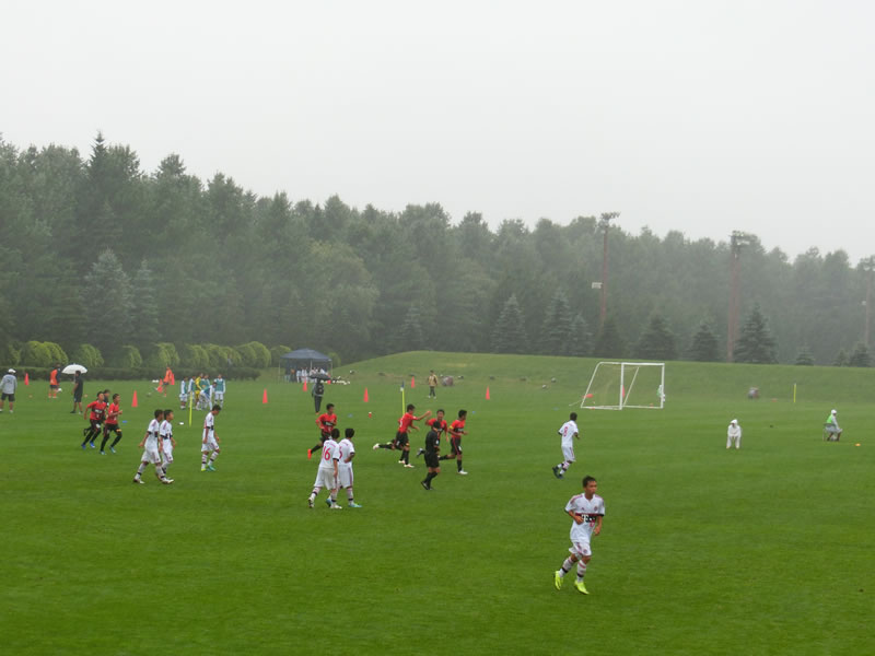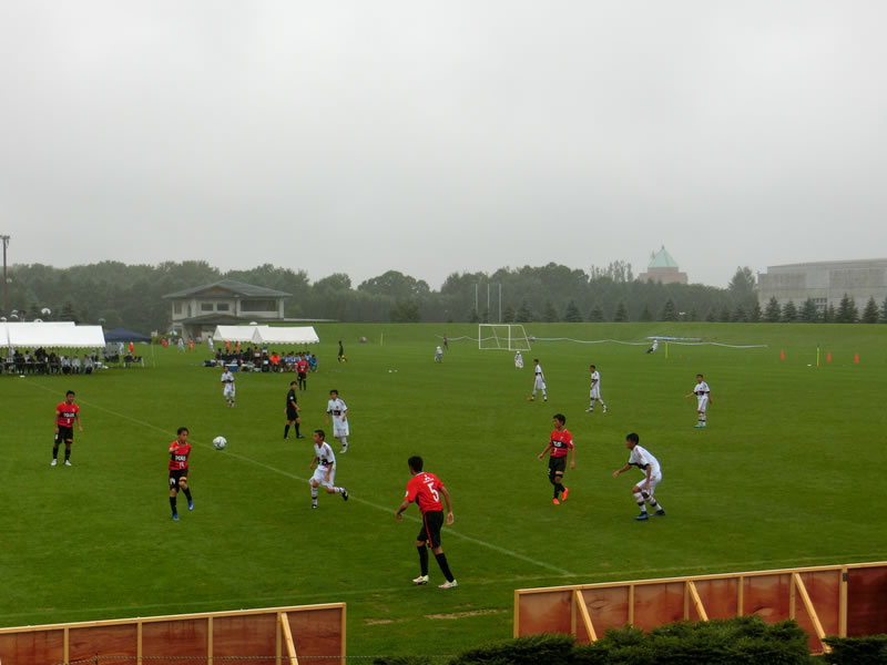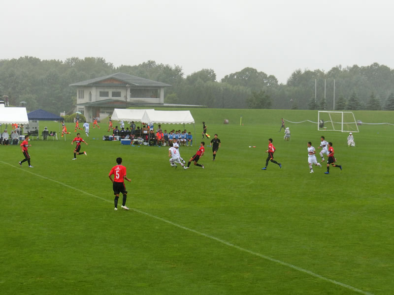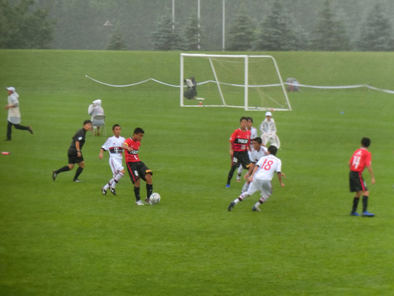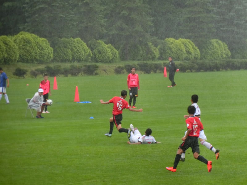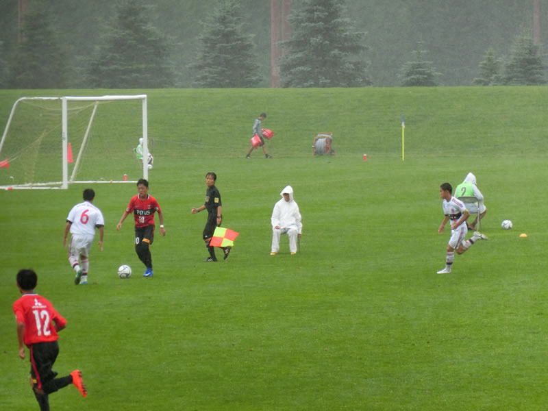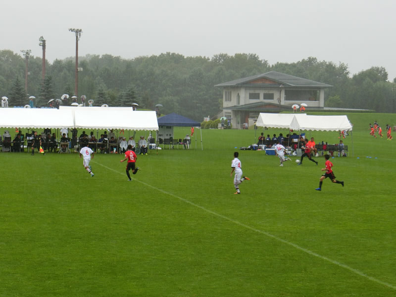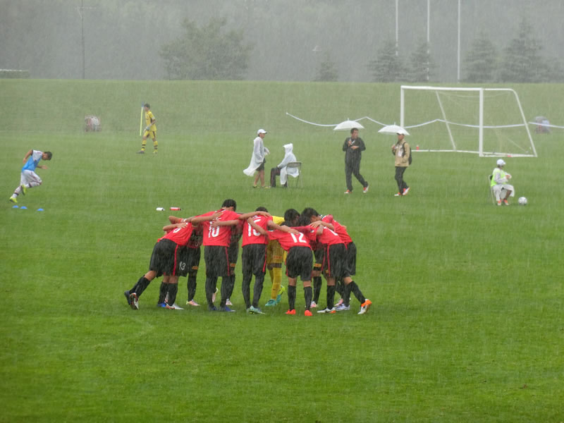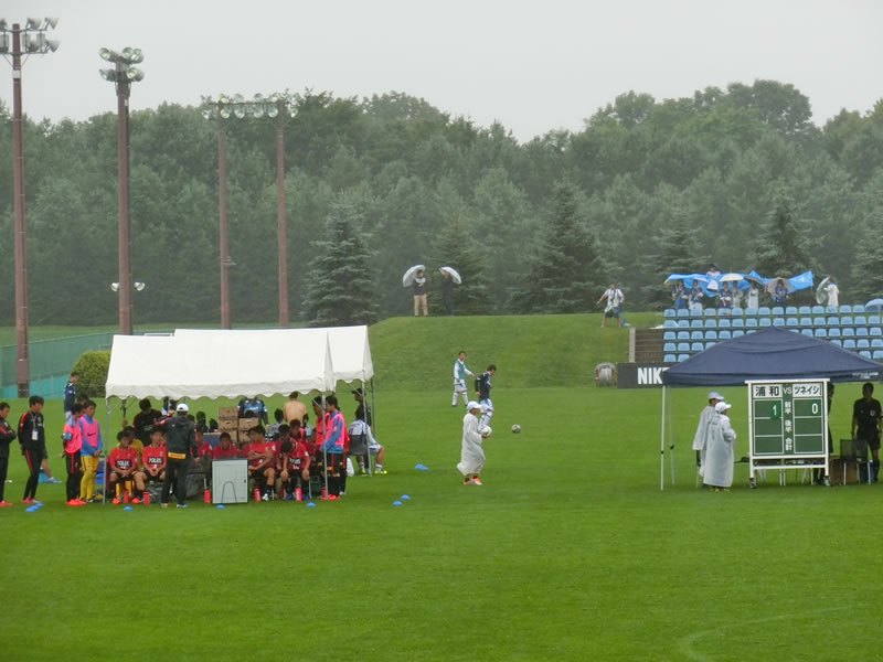 浦和レッズジュニアユースが臨む日本クラブユース選手権U-15、グループステージも最終戦となりました。16日に関東を襲った台風7号が、影響を及ぼすかもしれないという予報が出ていた北海道の帯広でしたが、雨は時折すごくなる時間もあったものの、強風など、よりサッカーの内容を左右するような状況までは行かず、雨というやりにくい環境はあったものの、ピッチコンディションの良い、帯広の森球技場で2連敗して後がなかった浦和が、最後の最後に意地を見せ、ただ勝利しただけではなく、その姿勢がグループステージ突破をもたらすという最高の結果をもぎとってくれました。
