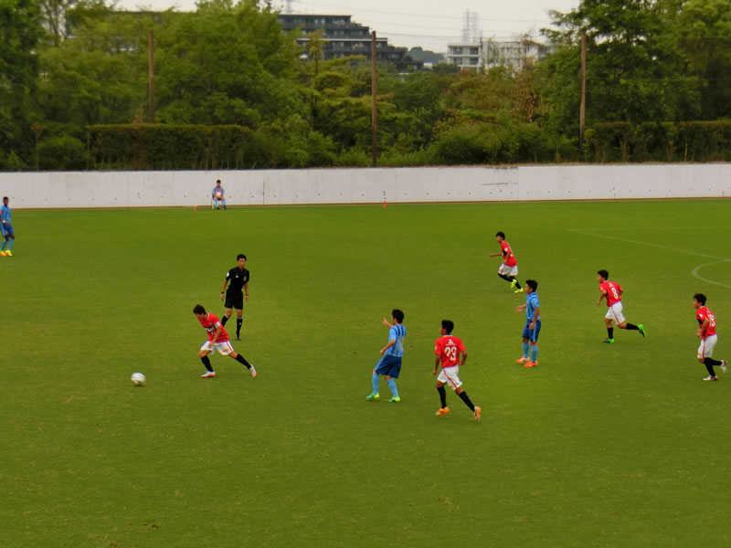 試合開始から、フォワードの位置に入った10番渡辺陽のところは、かなり相手ディフェンス陣がケアしているようで、なかなか、そこを使うプレーというものができていなかったものの、その分、前線からの激しいプレスなどで相手の守備陣にプレッシャーを与える動きなど意識的にやれているのが良かったです。