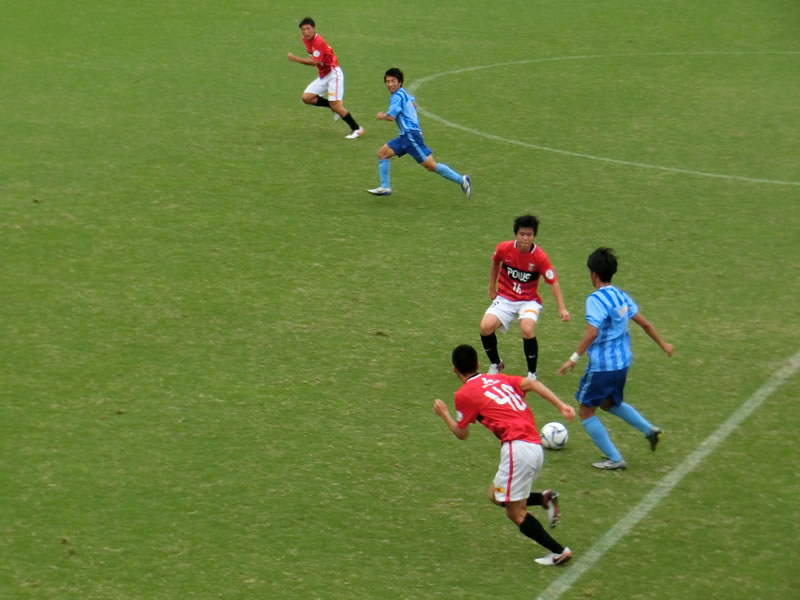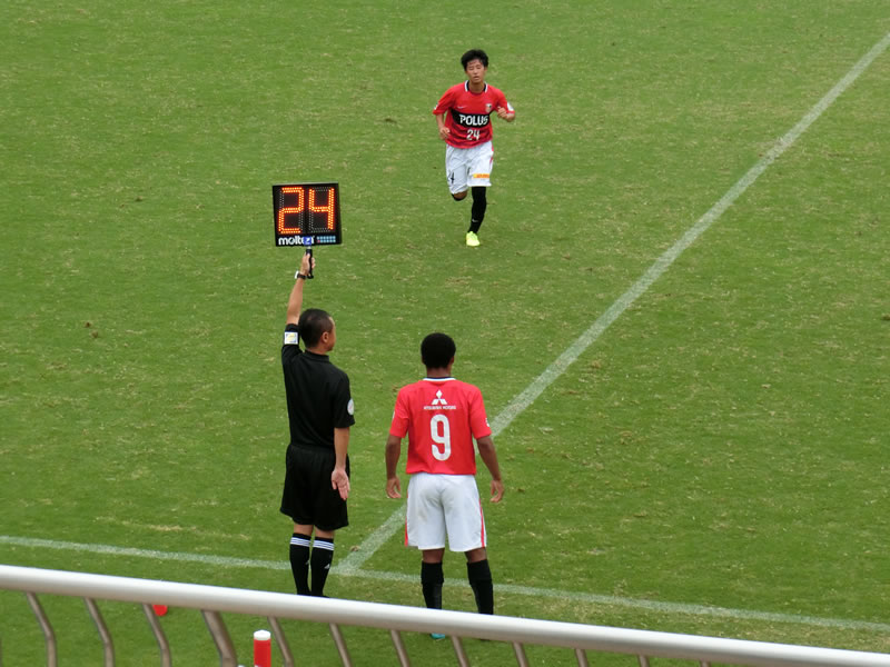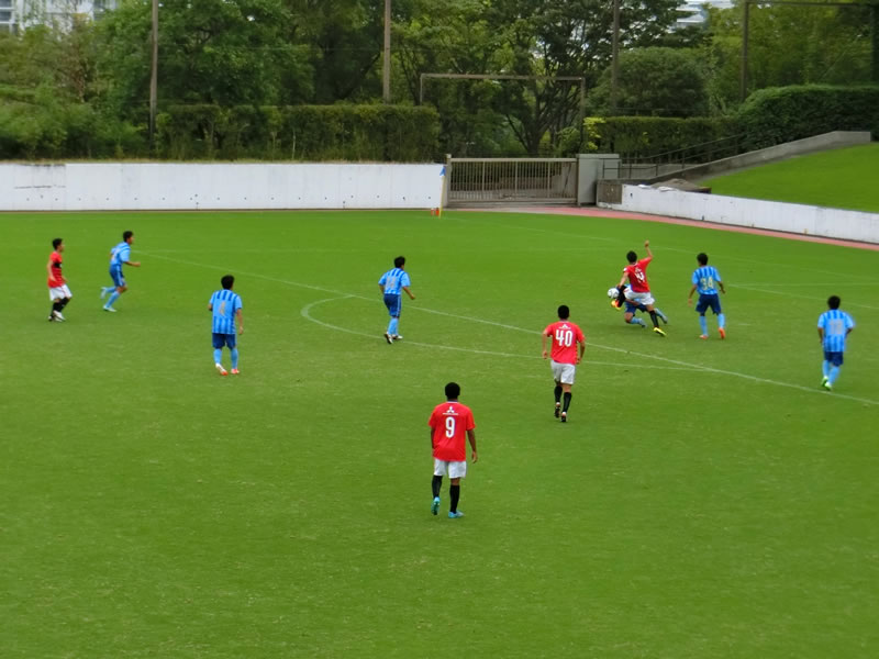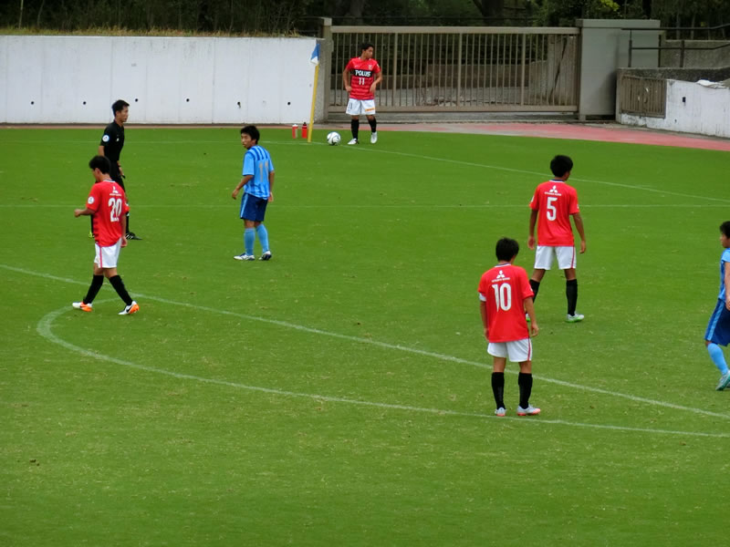 後半スタートは、攻めの狙いなどでいえば、浦和が攻める回数が多くは見えるものの、前半よりうまく対処されてしまう場面が多く、2分にセットプレーからポストを叩く(枠に行っていたら1番山田晃士が反応していたと思いますが)シュートを打たれるなど、やや相手のペースにも感じられるスタートとなりました。