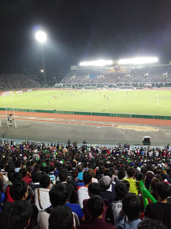 ということで、私は、ここカンボジアに来て、初めてサッカー観戦をしました。久しぶりのサッカー観戦は、東南アジアNO.1を決めるSUZUKI CUPという大会の予選ラウンドです。