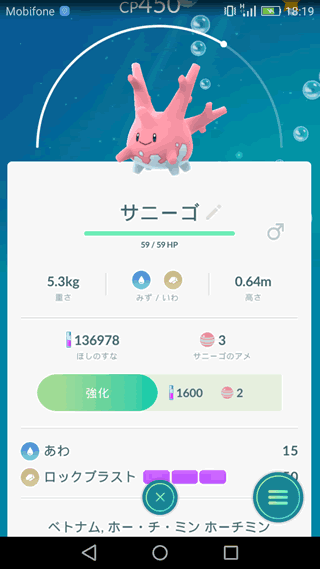 南国限定(?)ポケモンのサニーゴをベトナムで捕まえたけど、どうなんだろう?