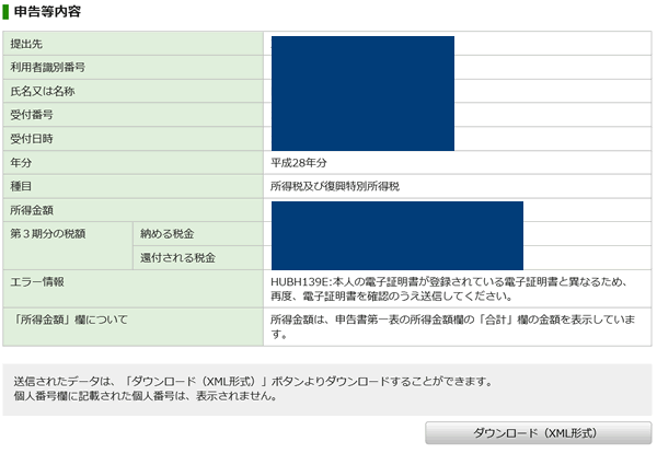 「HUBH139E:本人の電子証明書が登録されている電子証明書と異なるため、再度、電子証明書を確認のうえ送信してください。」