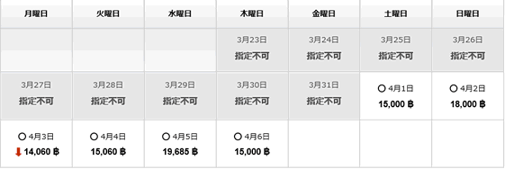 日本発券でも、もちろん3月23~3月31日に戻る便はありません。