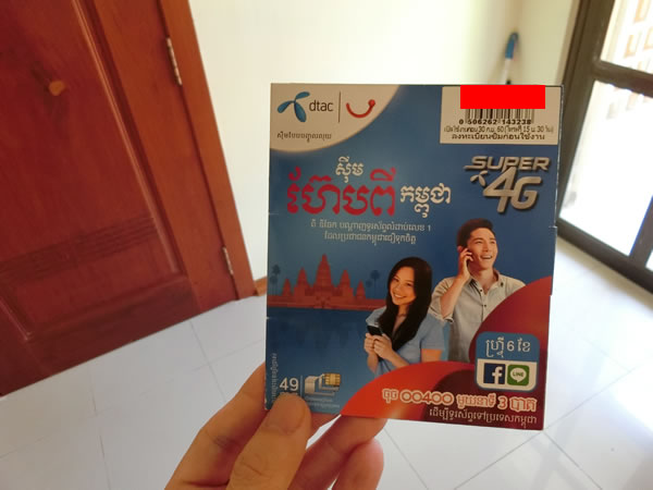 で、タイ人の友人と合流した後に、SIMカードがないことを伝えると、安く買えるということで、買ってきてくれました。割と気が利くもののおっちょこちょいというか、買ってきてさあ、設定しようかと思ったのですが、買ってきたSIMカードのパッケージを見て、友人は、「タイのSIMカードだけど、カンボジアの言葉なのでよくわからない」という話になりました。