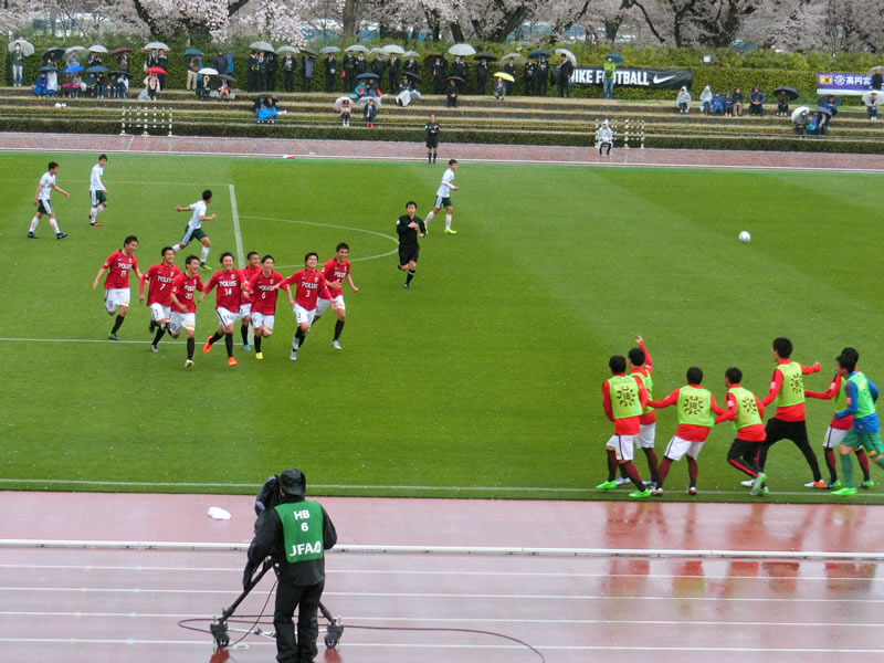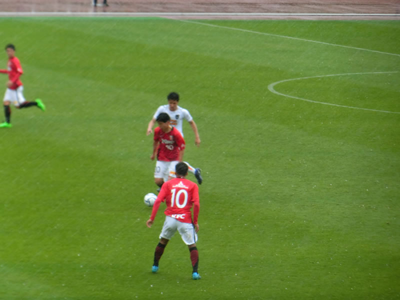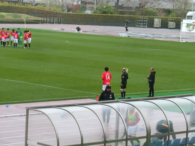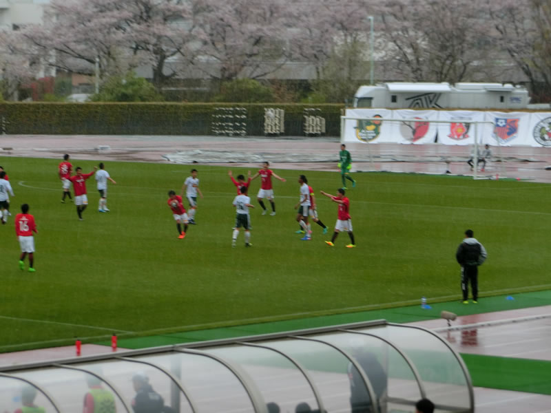 ・・・強風と、天気予報以上の大雨は邪魔でしたが、そのおかげで、浦和レッズユースの選手が持っていてほしい、負けたくない気持ちからのサポーターの言葉を借りる(パクリともいう)と「選手の気持ちが戦術を上回り逆転勝利」も見られました。