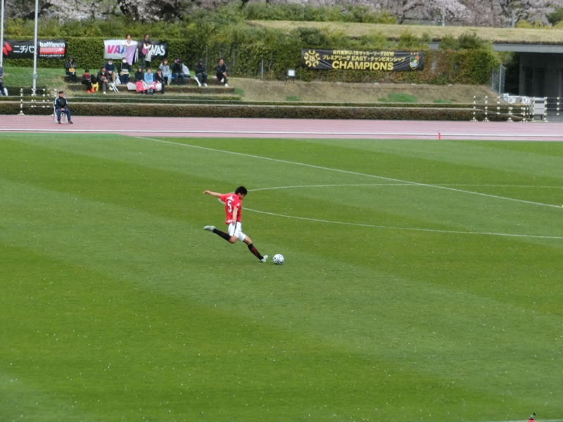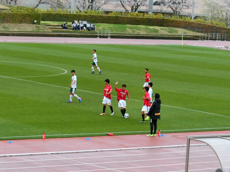 前半は、完全に強風に向かって浦和が攻めなければならない状況ということで、普通にサッカーで言えば、相手に有利な状況でのスタートとなったのですが、なんとなくこれまでの浦和レッズユースというチームは、歴代そういう状況で耐えて、その風を有利に生かして後半にという戦い方ではまったことがあまりないというか、確かに、プレミアリーグで強風で思い出されるのは、コンサドーレ札幌U-18とアウェイで対戦した過去に強風が影響した得点と失点があったなとか、風が明らかに試合の流れに影響を与えた試合もありましたが、でも浦和レッズユースは、どちらかというと、天候云々を活かしてという戦い方は、良い意味でできないという印象があったりします。この試合は、どうだったかというと、やはり風に苦戦して、風を活かしてという試合には、ならなかったと思います。