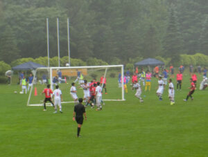 細かい時間は覚えていませんが、このあたりから2番奥山圭介が中盤の高めの位置にポジションを上げると、迎えた25分に相手ディフェンダーの裏に見事なパスを通し、そのパスに抜け出した13番堀井真海が思い切って振りぬいた強烈なシュートが決まり、2-2の同点に追いつきます。