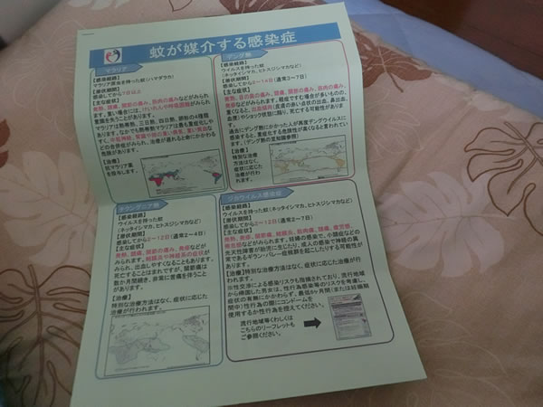 担当の方に、親切に相談に乗ってもらいました。まあ、そうかなとは思っていましたが、上記の蚊が媒介する感染症の書類などをもらったのですが、「カンボジアは、どれも当てはまりますね、原因も蚊以外にもいろいろ考えられますね。」と。。。 ですよねw