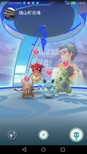 以前は、ポケストップだけだったのですが、ジムができていました。なんだか、ポケモンの数も少なく寂しそうだったので、カイロスを置いてみました。