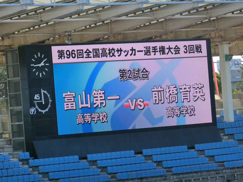 新年1発目のサッカー観戦は、高校サッカー選手権大会3回戦、富山第一高校vs前橋育英高校の試合となりました。