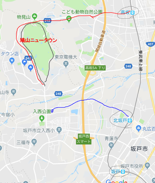 どうして、鳩山ニュータウンから坂戸駅までバスを通せないのだろうか。坂戸駅から鳩山町へのバスは、平らなエリアから平らな大橋までの区間だけ。