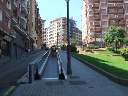 坂道部分にエスカレーター(動く歩道と言った方が良いかもですが)が張り巡らされているんですね。だから、坂道の移動は、それほど苦にならないわけです。