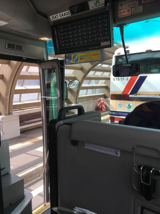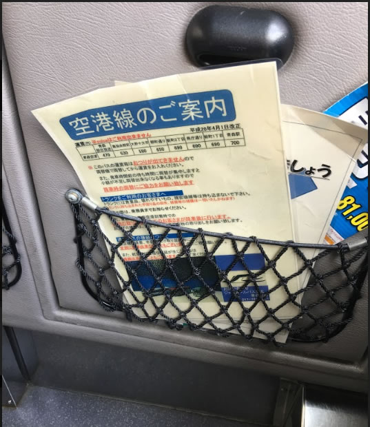 座席の前には、停留所と料金表も入っていてわかりやすかったです。空港発は、料金は後払い。チケットはありません。