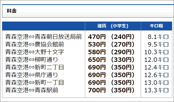 ちなみに、これも料金をある程度一定にしてしまう空港発のバスも多い中で、青森空港~青森駅のバスは、結構細かく金額も設定されています。