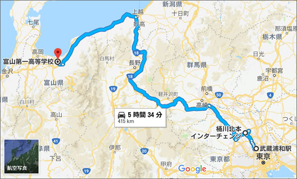 桶川北本インターチェンジまで下道で行き、そこからフルで高速を使って富山第一高校へ向かいました。