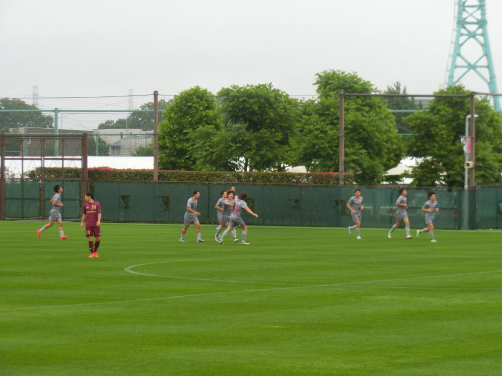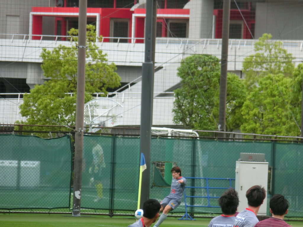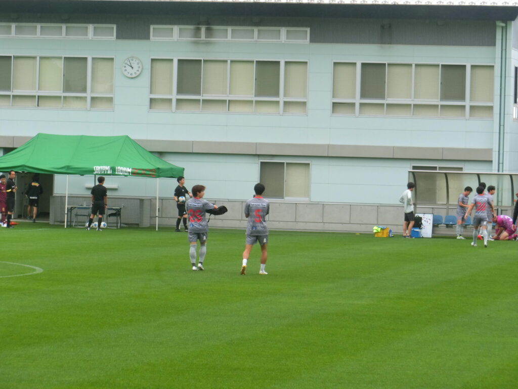会場に足を運んで試合グラウンドの横でアップをしている選手の中には、野崎雅也と中村駿介の2名がおり、まず一安心。