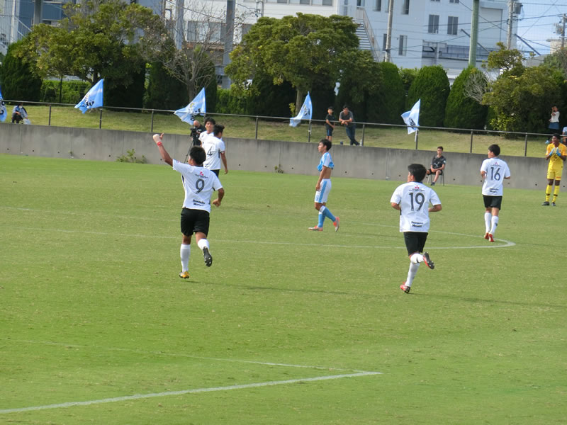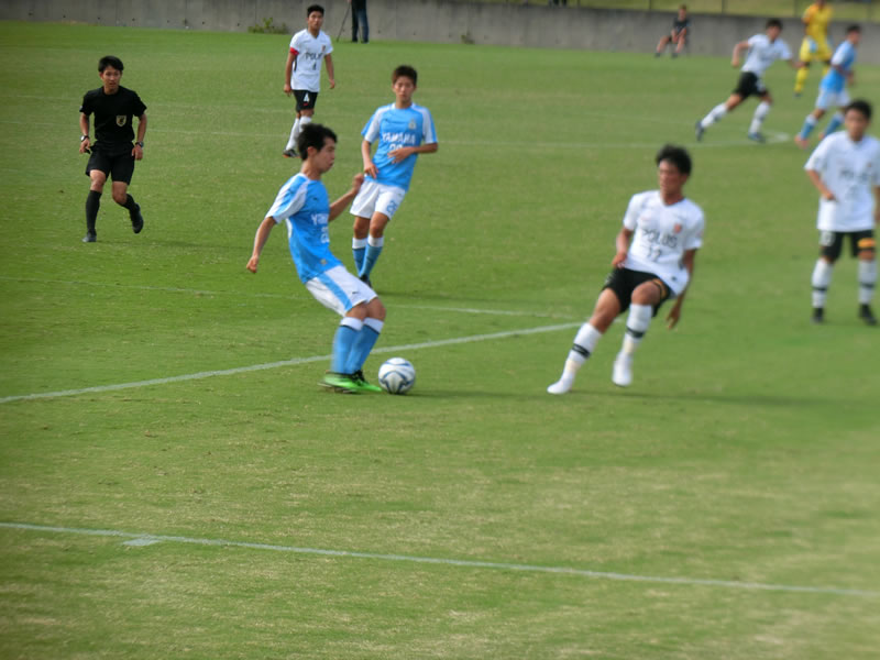 後半6分には、ややゴールまでは距離があるもののフリーキックのチャンスで3番清水哲太から右前線に流れた7番與那覇航和にパスが通り、10番山中惇希に渡りドリブルで仕掛けるもここは、相手ディフェンダーを交わしたところでラインを割ります。