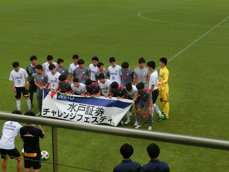 前半11分のコーナーキックのチャンスで39番戸田大翔からのクロスを36番瑞慶山一真がヘッドで枠を捉えるシュートを狙うも決まらず。
