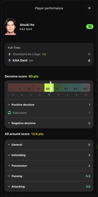 *伊藤敦樹(ヘント/〜後半37分、1アシスト/73)