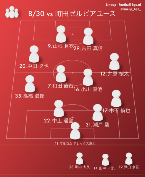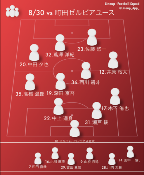 で、正直、個々が頑張っているのは伝わるところも多かったものの、私もちょっと不貞腐れて試合を眺めているような時間もあったりはしたのですが、最後に2点決めて追いついたという結果以上に、一つの、大きなストーリーを感じた場面がありまして、それが、1点返したところになるのですが、攻撃が停滞していたところで、一つ、17番 木下 侑也がサイドではなく中に対してドリブルを仕掛けて突破に成功したのですよね、で、次のパスが精度を欠いて、相手の選手にインターセプトされてしまったのですが、そこに対して36番 西川 碧斗が、すぐにプレスをかけて奪い取り、 32番 蔦澤 洋紀に繋げて、見事なシュートで1点返した場面があったのですが、相手の形にはまっている時に、打開するために選んだプレーと、そのプレーに味方として反応できて結実させるために、しっかりプレーできて、ここではゴールまで繋がっているのですが、ここに大きなストーリーを感じたというか、こういうストーリーのある連動連携が攻撃にも守備にも出てくると、大きく前進できる何かが見えるのではないかなと勝手に感じたわけです。