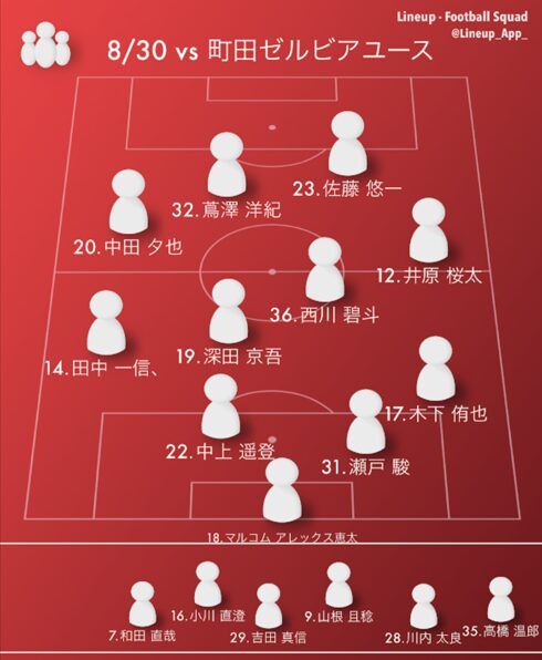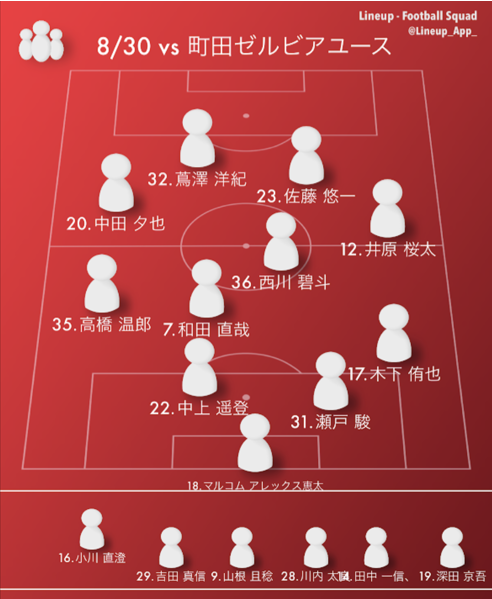 浦和レッズユース(得点者):32番 蔦澤 洋紀 x2