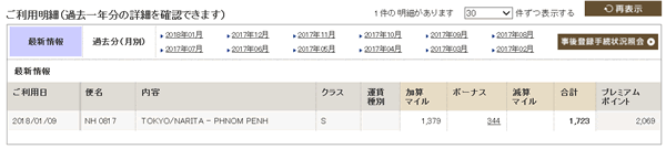 現在、今年最初のカンボジア渡航をしているのですが、上記は、9日に利用した分の現在の私のランクでのマイルやプレミアムポイントの片道分が入った履歴があるのですが、片道でプレミアムポイントが2069ポイントということで、往復分入って4138ポイントになります。