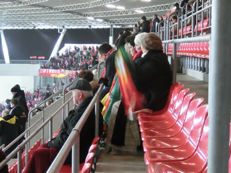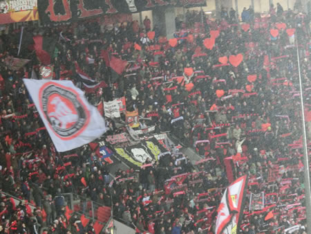 ■ベンフィカファンも来てます。多くがレヴァークーゼンファンですが、ベンフィカの得点時に、喜んで立ち上がる人たちがいて、思ったより多く来ていることが分かりました。
