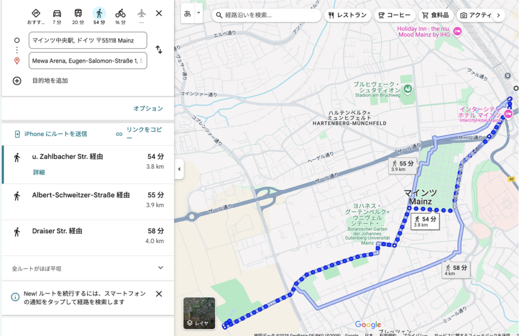 マインツ中央駅から気合いで歩けば1時間くらい(4kmくらい)