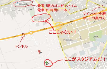 | 最寄り駅 | マインツ・ゴンゼンハイム駅(2.5kmほど) マインツ中央駅(4kmほど) |