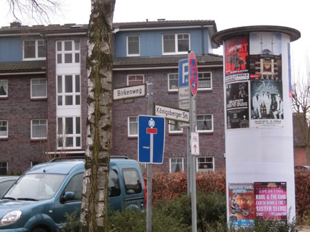 | スタジアムまでの道のり | 駅を背にした前方方向にあるBirkenwegという通りをまず進んでいきます。基本的には真っ直ぐ進む感じなのですが、途中で通りを渡るとOchsenzoller Strasseという通り名に代わります(この通りの入り口あたりからスタジアムの方向を指した標識が出てきます。距離にして1.5くらい。徒歩だと20分くらいですね。*バスの場合は195番で |