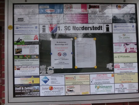 ■5部リーグでは、地域ごとにグループで分かれており、ハンブルクにチームが多いことから、オーバーリーガ・ハンブルクというリーグが存在します。このポスターは、次節の対戦カードの告知。