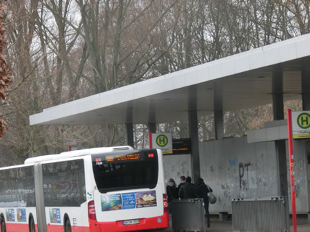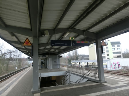 スタジアムまでの道のり駅の出口から反対側に抜けて後は道沿いに進むだけ。*試合の日は、線路の反対側に抜けたところからシャトルバスが出ています。*シャトルバスの出ていない日は、22番のバスで13分のHellgrundweg (Arenen), Hamburg まで行き、そこから徒歩9分と紹介されています。