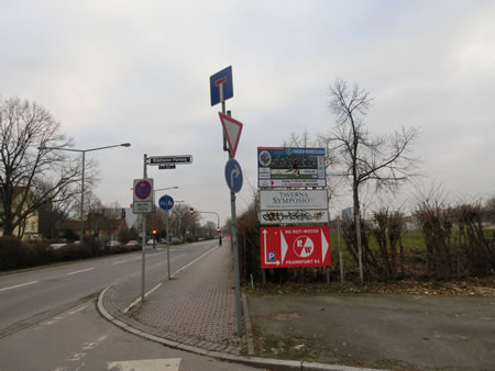 スタジアムまでの道のりフランクフルト中央駅から来た場合、進行方向側に歩き交差点で左折。Ludwig-Landmann-Strasse通り沿いをしばらく進むとグラウンドがあります。